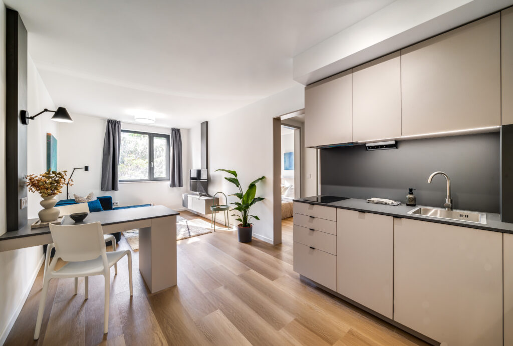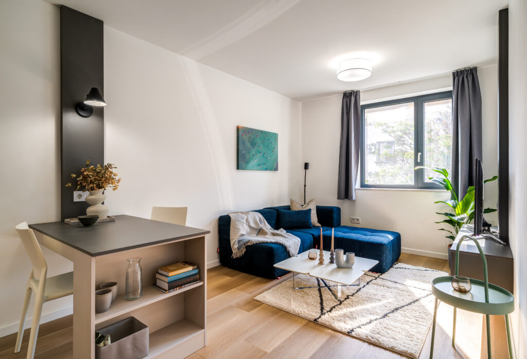 A lakások kulcsrakészen, teljeskörűen bútorozva, gépesítve azonnal költözhető állapotban kerülnek átadásra, mely a vételár részét képezik. A hirdetésben szereplő fényképek az épületben található, már elkészült lakások állapotát mutatják – a lakások átadására 2025 augusztusában kerül sor.