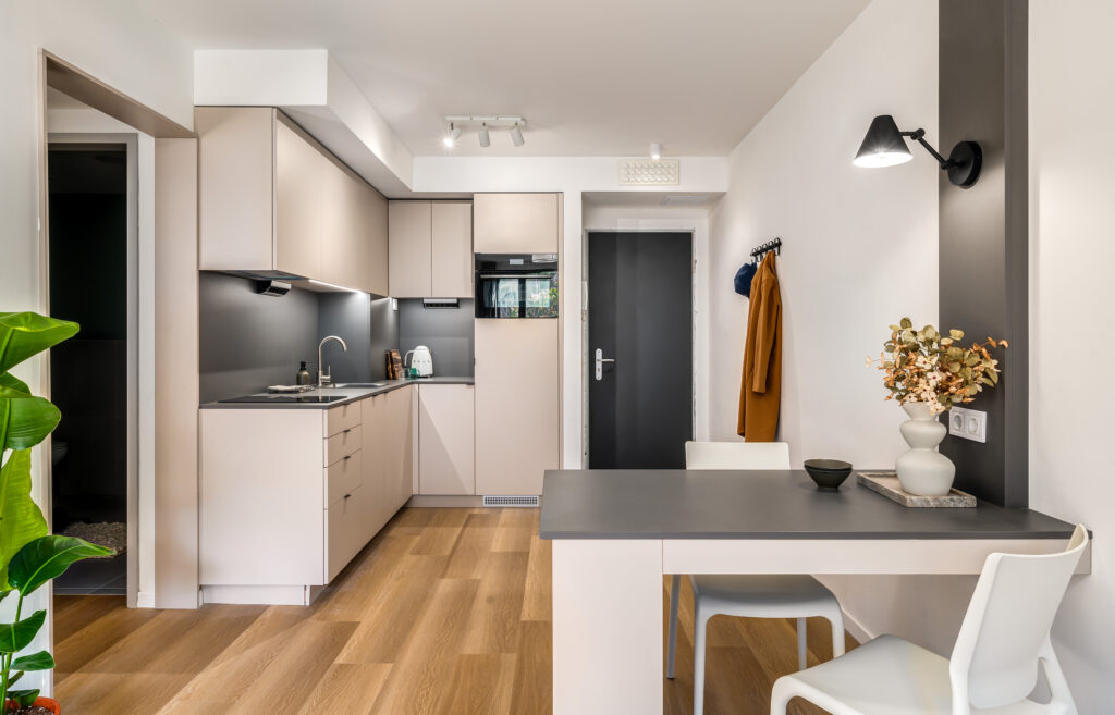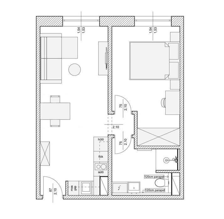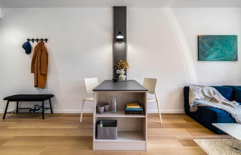 A lakás 39 négyzetméter alapterületű, amerikai konyhás nappalival plusz hálószobával, valamint egy zuhanyzós fürdőszobával rendelkezik.