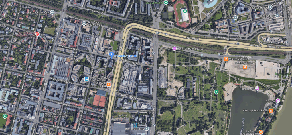 Az épület a Prielle Kornélia utca és a Szerémi út találkozásánál helyezkedik el. A társasháztól a főváros központja és a Kelenföldi vasútállomás autóval és tömegközlekedéssel egyaránt 15 perc alatt elérhető.